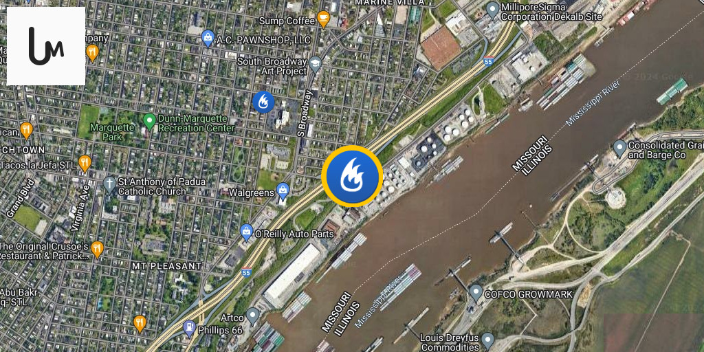 6000blk of N. Broadway - Large two story warehouse, fully involved. Defensive fire attack operations underway. STLCityTruck Company 20 is first due. Battalion 6 is in Command