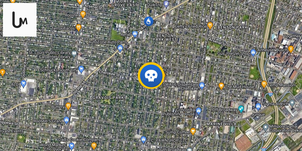 3000blk of Arsenal - Two story brick mixed-use occupancy building, smoke/fire showing from the chimney. One line deployed. Primary search underway. STLCity Engine Company 1 is first due. Battalion 4 is in Command