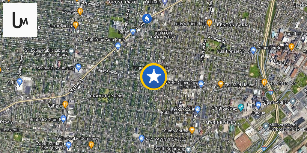 3000blk of Arsenal - Two story brick mixed-use occupancy building, smoke/fire showing from the chimney. One line deployed. Primary search underway. STLCity Engine Company 1 is first due. Battalion 4 is in Command