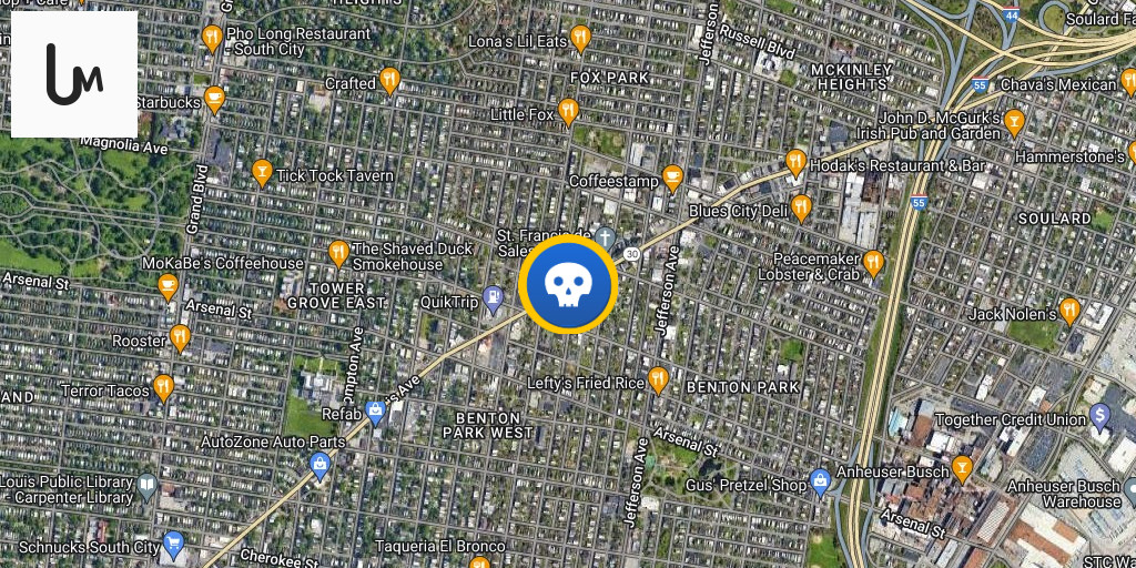 3000blk of Arsenal - Two story brick mixed-use occupancy building, smoke/fire showing from the chimney. One line deployed. Primary search underway. STLCity Engine Company 1 is first due. Battalion 4 is in Command