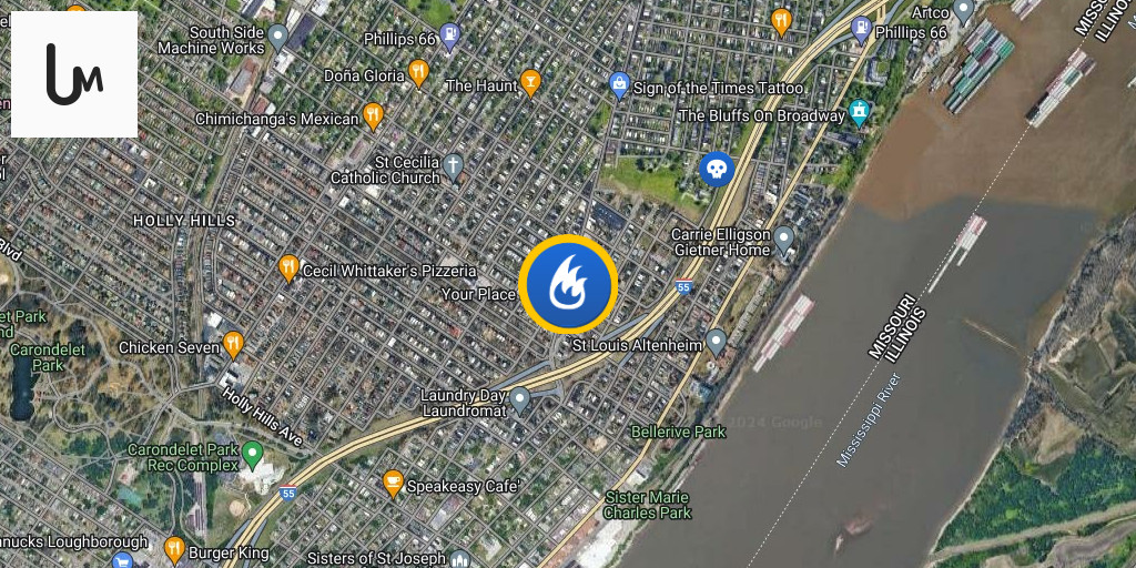8800blk of Riverview Drive - Occupied two story brick dwelling, heavy fire showing on the first floor. One line deployed. Primary search underway. STLCityEngine Company 33 is first due.Battalion 6 is in Command