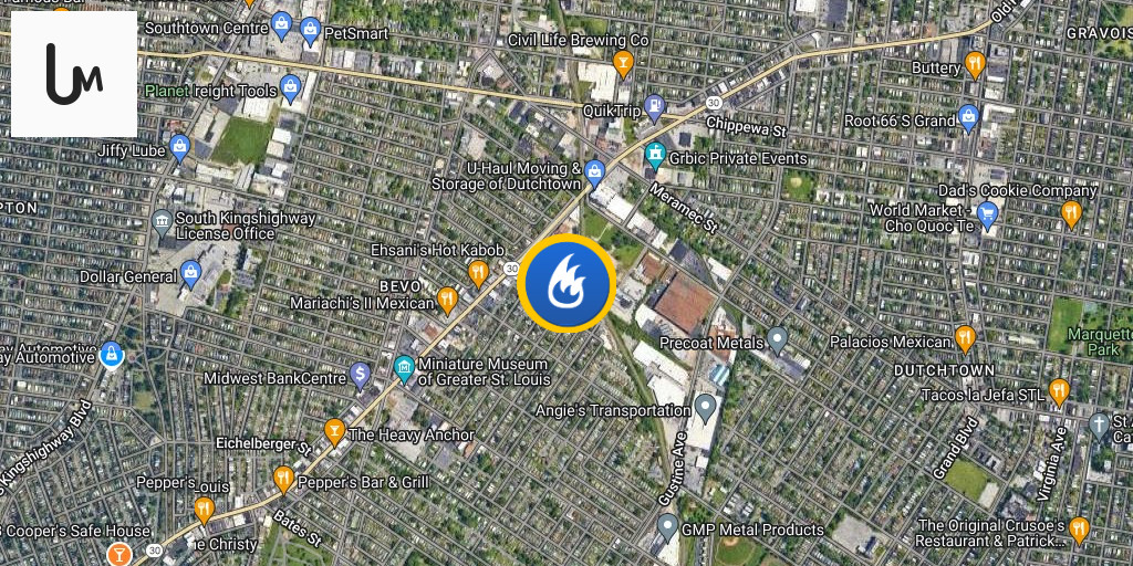 3600blk of Cote Brilliante - One story brick building, heavy fire showing on Side B. One line deployed. Primary search underway. STLCity Truck Company 17 is first due.Battalion 1 is in Command