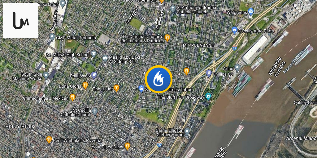 2900blk of Palm - Vacant two story brick building, heavy fire showing on the first floor. One line deployed. Primary search underway. STLCityEngine Company 8 is first due.Battalion 1 is in Command