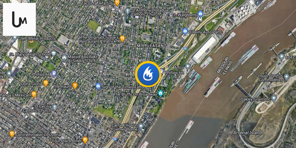 Kossuth & Red Bud - Vacant two story brick building, heavy fire showing on the second floor. One line deployed. Primary search underway. Occupied exposure building on Side B. STLCityEngine Company 26 is first due. Battalion 6 is in Command