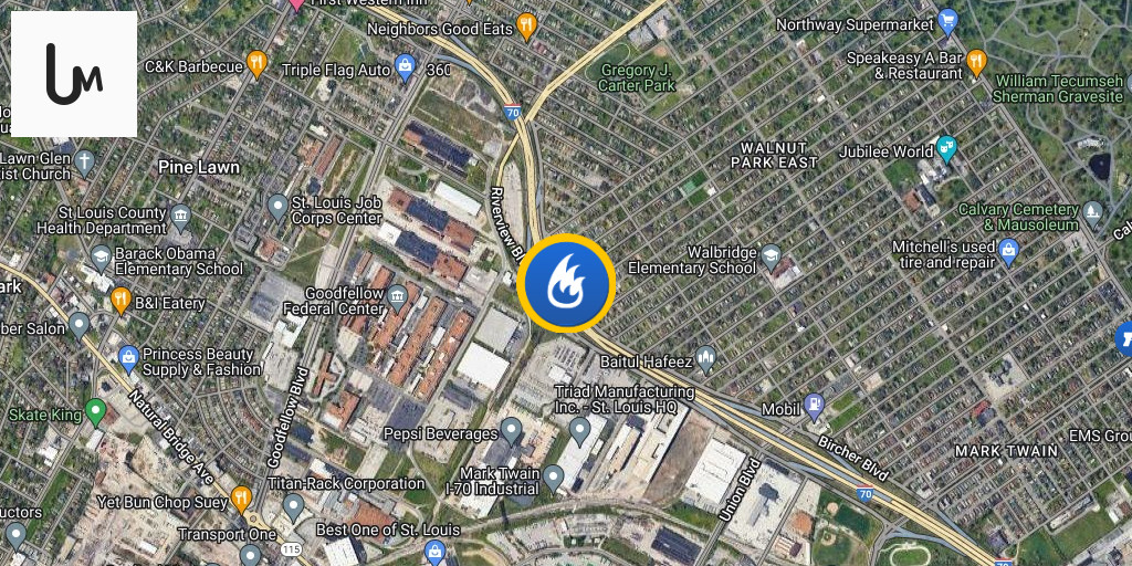 1700blk of Dick Gregory Place - Occupied two story brick dwelling, heavy fire showing on the second floor. One line deployed. Primary search underway. STLCity Engine Company 28 is first due.Battalion 5 is in Command